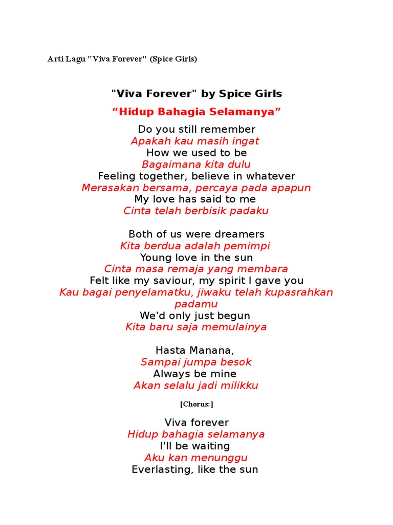 Lirik Dan Makna Lagu Viva Forever Brainly Co Id